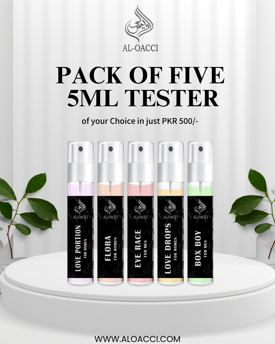 Not sure which scent suits you? Try all 5 in our 5ML Tester Pack – perfect to find your signature fragrance!