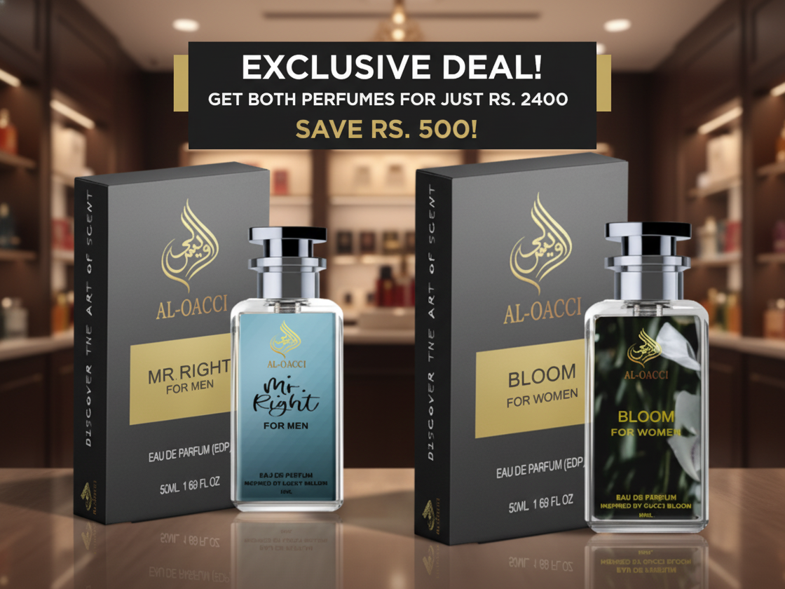 Celebrate confidence and elegance with our Exclusive Fragrance Deal, featuring Mr. Right for Men and Bloom for Women — a perfect pair designed to complement each other.